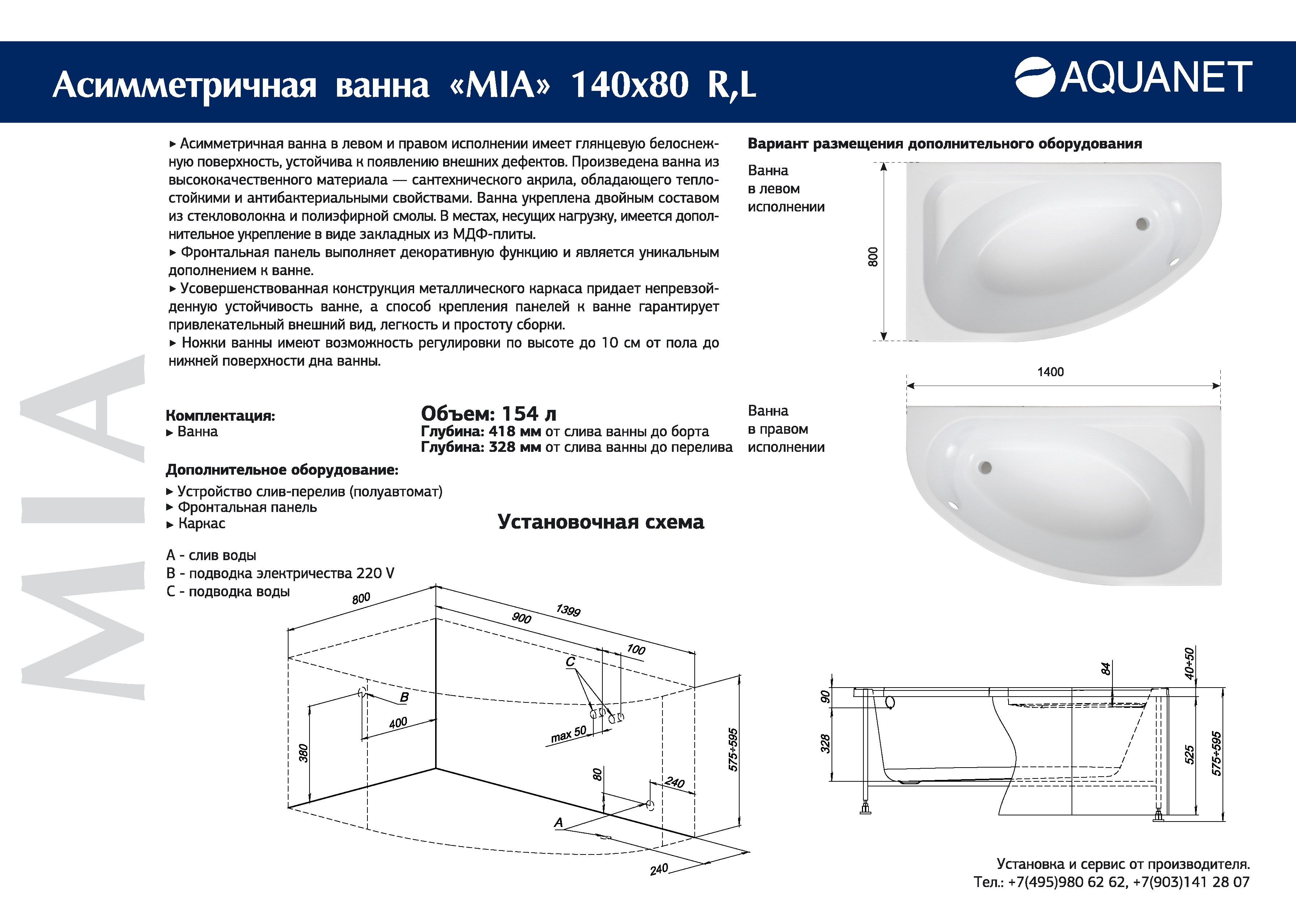 МодельMia 140x80 L/R